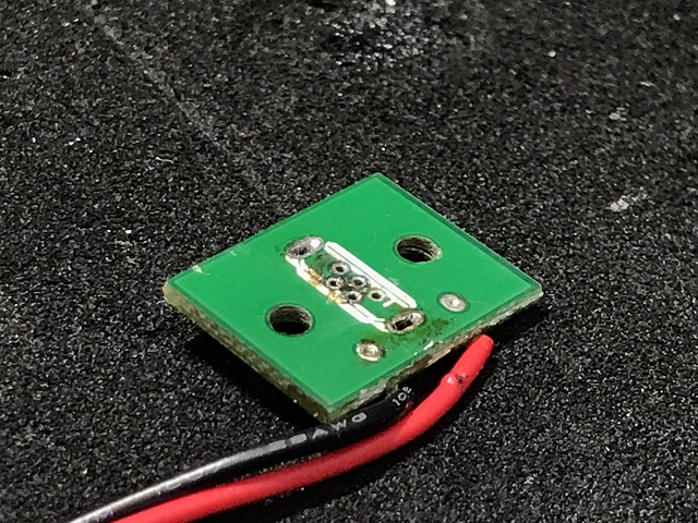 しかし、コネクタの端子の5本が基板の中に入ったままなので、取り除かなければ新しいコネクタの取り付けが出来ません。吸い取りリボンでは無理です。