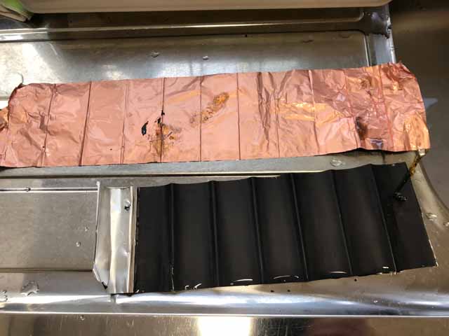 危険なので、場所を移動し、水の出るところに移し分解して行きます。水を掛けると、泡も気体も発生します。刺激臭なので換気は必要です。広げていくと、だいたい50センチほどの箔が使われていました。